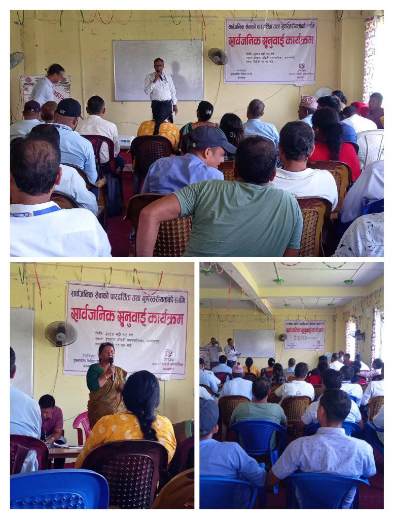 महेन्द्रनगर । कञ्चनपुरको दोधारा चाँदनी नगरपालिकाले सार्वजनिक सुनुवाई गरेको छ । मंगलबार पालिकाले आफ्नै सभाहलमा ‘सार्वजनिक सेवाको पारदर्शीता तथा गुणस्तरियता’को लागि भन्दै सार्वजनिक सुनुवाई कार्यक्रम गरेको हो ।