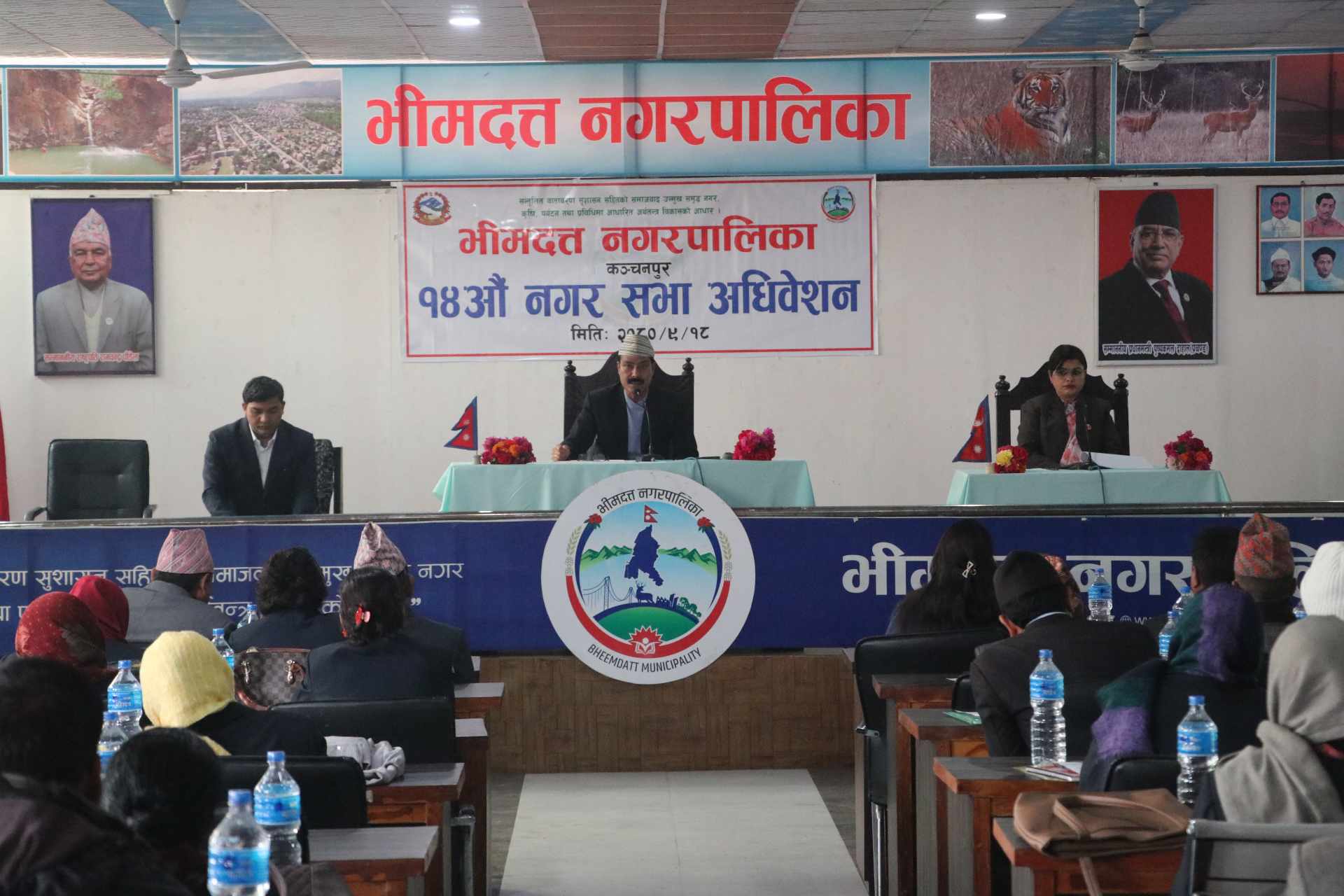 महेन्द्रनगर । कञ्चनपुरको भीमदत्त नगरपालिको नगर सभाको १४औँ अधिवेशन सम्पन्न भएको छ । भीमदत्त नगरपालिकाका नगर प्रमुख पदम बोगटीको अध्यक्षतामा बुधबार अधिवेशन सम्पन्न भएको हो ।