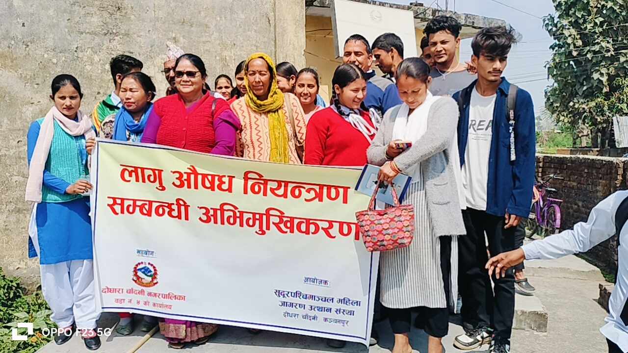 महेन्द्रनगर दोधारा । दोधारा चाँदनीमा लागुऔषध नियन्त्रणका लागी अभिमुखिकरण कार्यक्रम सम्पन्न भएको छ् । शुदुरपश्चिमाञ्चल महिला जागरण उत्थान संस्थाको आयोजना र दोधारा चाँदनी नगरपालिका– ४ वडा कार्यालयको सहयोग र माईती नेपाल कञ्चनपुरको सहकार्यमा एक दिने लागुऔषध नियन्त्रणका लागी अभिमुखिकरण कार्यक्रम सम्पन्न गरिएको दोधारा चाँदनी नगरपालिका– ४ का वडाध्यक्ष भक्त बहादुर सुनारले जानकारी दिएका छन् ।