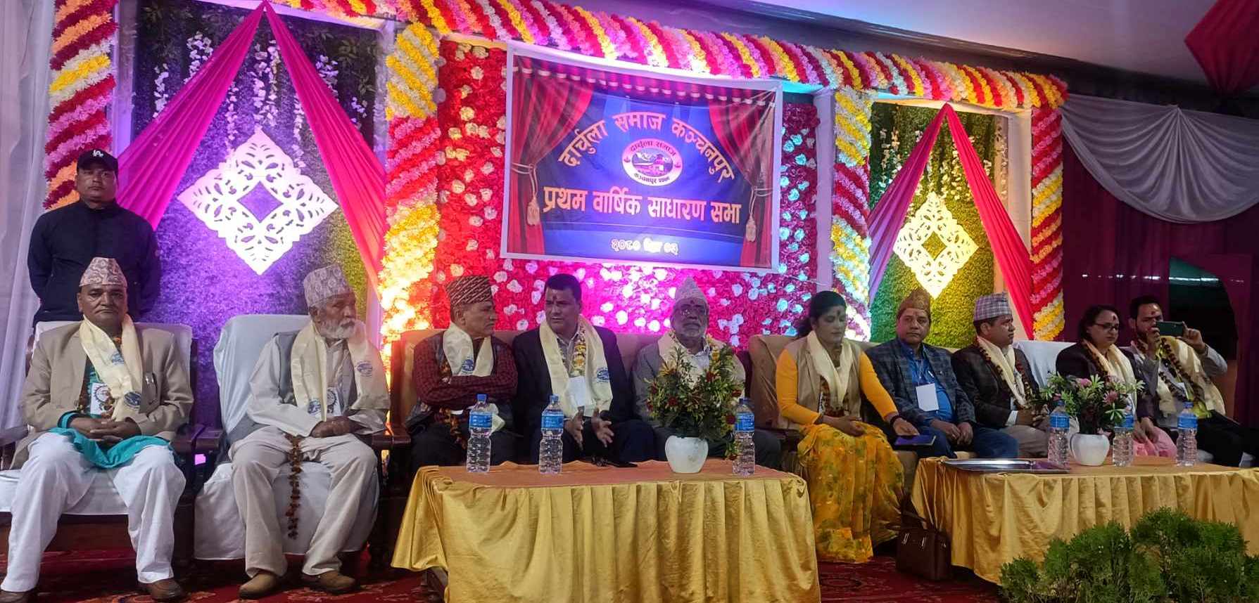 दार्चुला समाजको उक्त प्रथम वार्षिक साधारण सभाको विशिष्ट अतिथीमा नेपाली कांग्रेस सुदूर पश्चिम प्रदेशका प्रमुख सचेतक बिक्रम धामी, व्यवस्थापिका संसदका पुर्व उप सभापति भोजराज जोशी, सुदूर पश्चिम प्रदेश सदस्य लक्ष्मी विक, दार्चुलाका पुर्व जिविस सभापति मान बहादुर चन्द, कञ्चनपुरको बेदकोट नगरपालिकाकी उप प्रमुख तुलसी जोशी लगायत नेपाल सरकारका पुर्व तथा वर्तमान सह–सचिव, उपससिचव, अधिकृत लागयत निजामती कर्मचारी, राजनीतिक दलका नेता पदाधिकारी, समाजसेवी, उद्योगी व्यापारी लगायतको वृहत उपस्थितीका साथ प्रथम साधारण सभा सम्पन्न भएको छ ।