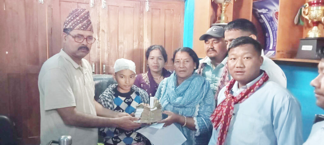 दोधारा । दोधारा चाँदनीमा सामाजिक अभियन्ताहरुले सरिना बचाउ अभियानमा संकलन भएको रकम हस्तान्तरण गरिएको छ् । दोधारा चाँदनी नगरपालिका– ९ निवासी सरिना सुनारको उपचारको लागी सामाजिक अभियन्ता नरेन्द्र बुढा, दिपक बस्नेत, तमान सिंह गुरुङ्ग र जगदिश थापाहरुले देश तथा बिदेशमा रहेका नेपाली दाजु भाईहरुबाट संकलन गरेको रु। २ लाख ५७ हजार ७ सय ९९ रुपियाँ नगद रकम दोधारा चाँदनी नगरपालिका– ९ मा वडाध्यक्ष गोपीलाल कडेंललाई हस्तान्तरण गरेका छन् ।