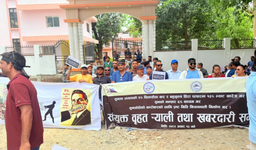 तर, सरकारले आर्थिक वर्ष २०८२ र ८३ को बजेटमार्फत लागू गरेको कर संरचनाले व्यवसायलाई धरापमा पार्ने भन्दै विरोध चर्किंदै गएको हो। महासंघका पदाधिकारीहरूले सरकारलाई व्यवसायमैत्री नीति अपनाउन आग्रह गर्दै चेतावनी दिएका छन्। सुन चाँदी व्यवसायी संघका कैलाली अध्यक्ष यदु सुनारले सरकारले माग सम्बोधन नगरे आन्दोलन थप चर्काउने बताए।