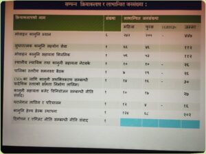 उक्त संवाद कार्यक्रममा लक्षित समुदायका नागरिकहरुको नागरिकता,जन्मदर्ता,विवाह दर्ता, तथा न्यायिक समिति समक्ष परेका उजुरी ।स्थानीय न्याय सेवा प्रवद्र्धन, न्यायिक समितिको प्रभावकारी कार्यसम्पादन, स्थानीय तहमा कानुनी सेवाको दिगोपन, न्यायमा पहुँच अभिवृद्धिका चुनौती तथा आगामी योजनाका विषयमा सहभागीबीच विस्तृत छलफल गरिएको थियो।