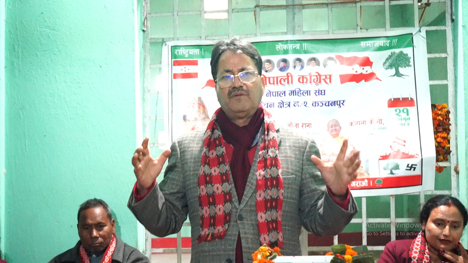कार्यक्रममा बोल्दै नेपाल महिला संघ कंचनपुर क्षेत्र नं . २ की सभापति प्रभा भट्टले लोकतन्त्रको रक्षा र संविधानको कार्यान्वयनका लागि कांग्रेस बलियो हुनुपर्ने बताइन्।